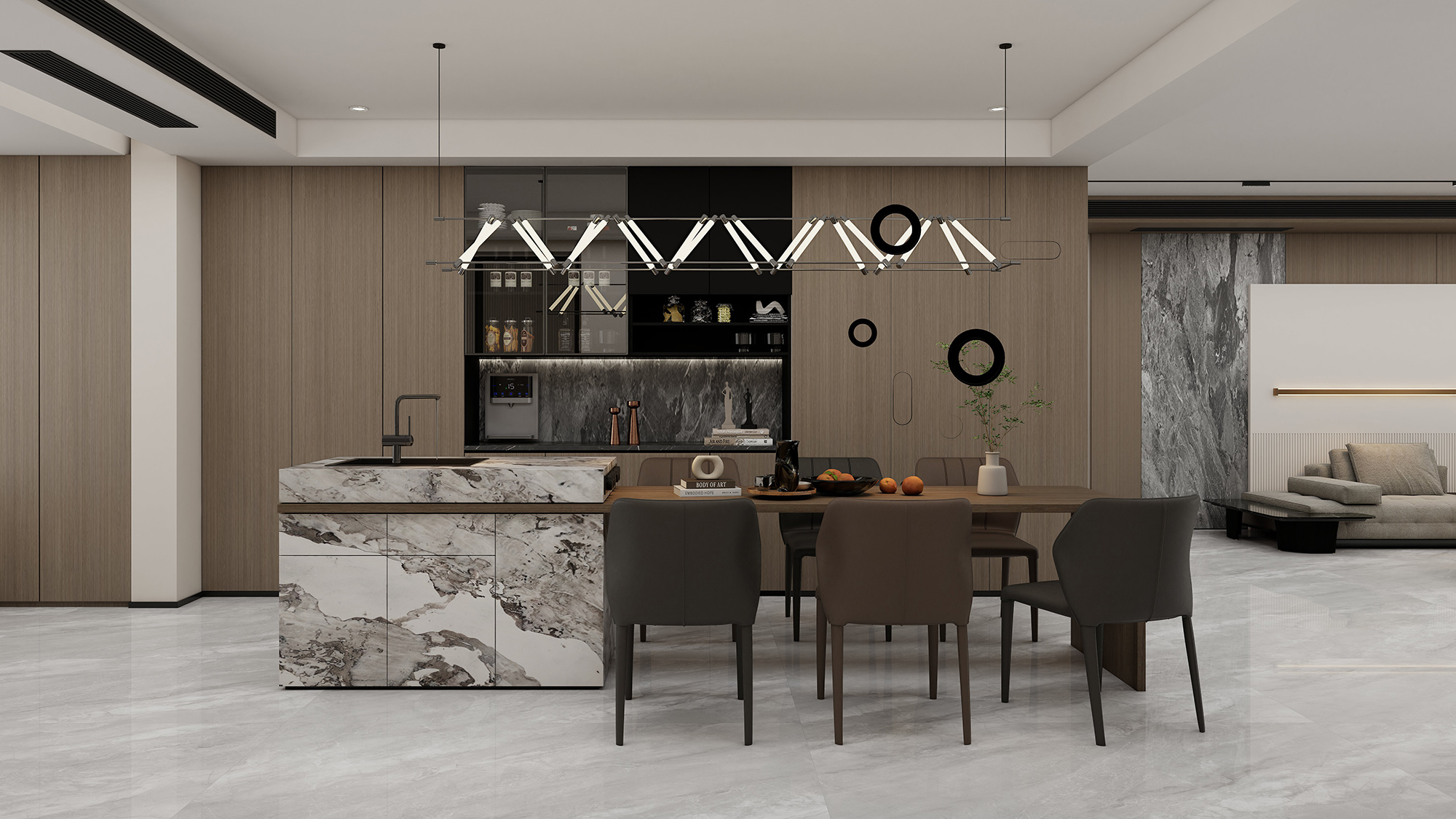 Full Body Marble-Look Porcelain Tile Item No: DDA918026A Size: 900*1800MM Thickness: 10MM Finish: High-gloss Polished Glaze Color Family: 卡尔德拉 Application: Live room\Bedroom\Kitchen & Bathroom Walls & Floors